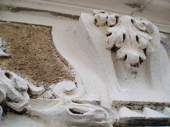 Oprava spočívala v osekání degradované omítky a očištění zdiva. Ve spolupráci s ing. arch. Janem Bártou a firmou AQUA obnova staveb s.r.o. jsme použili maltové směsi Vapo na obnovu omítek, směs Petra na opravu kamenných prvků a Porokalk jako nátěrovou hmotu.