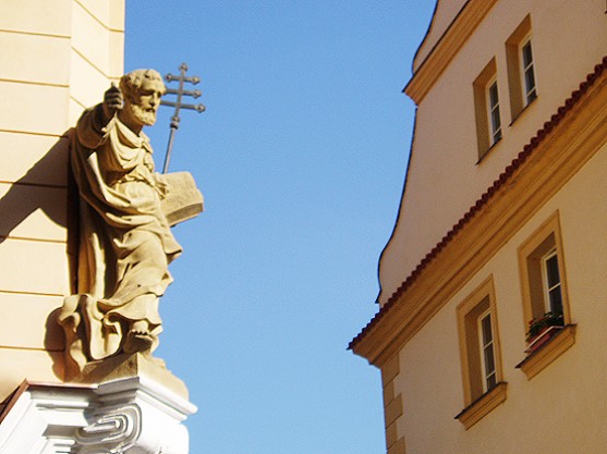 Fasáda je na objektu v ulici Míšenská a U Lužického Semináře.